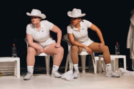 Zwei Tennisspielerinnen rasten aus. Zerschmettern ihre Schläger. Reißen Netze ein. Gewinnen interessiert hier niemanden. Das Spielfeld liegt in Trümmern. Dünner Sand weht über das Feld. Auftritt zweier Cowboys: Als eiserne Serena Williams-Fans, Country Stars und zugleich zutiefst unbeeindruckte und sehr leicht erregbare Männer wagen die Performerinnen Joana Tischkau und Maria Sendlhofer einen Balanceakt auf eben jener Linie zwischen Rivalität und Solidarität, Reenactment und Empowerment, zwischen heldenhaftem Selbstmitleid und unkontrollierter Wut. „RAGE“ fahndet nach den verschiedenen Lesarten von Wut und untersucht Gründe ihrer Ungleichverteilung. Untersuchungsfeld ist der Tenniscourt als Schauplatz, in dem Einschreibungen von race und Gender verhandelt werden. „RAGE“ rückt die Inszenierung von Wut ins Zentrum des Geschehens: Als Fake, als Annahme, als Privileg, als Übertreibung und als fulminantes Spiel.
